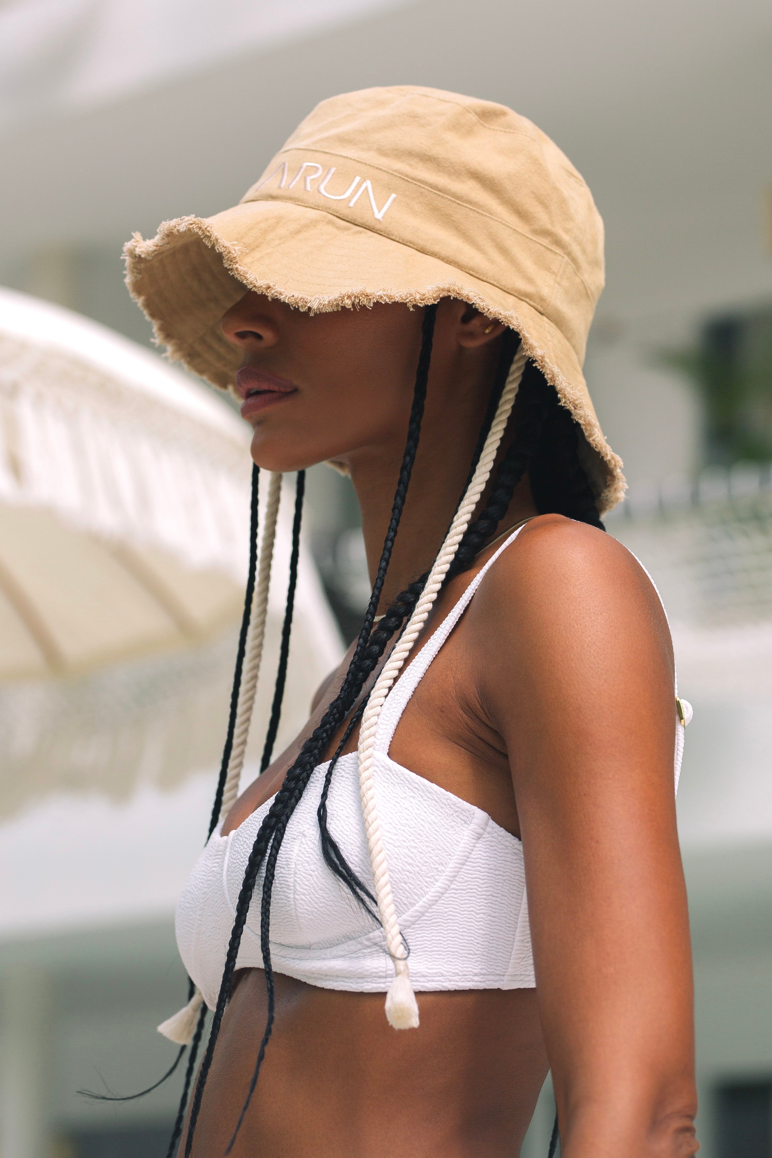 Bucket hats are officially back and here to stay. Arun bucket hat is the perfect accessory to your beach essentials. Featuring 100% cotton fabric and braided nautical cotton cords to tide it up as you feel like. It has a flexible wraparound brim, so it’s perfect for packing in your beach bag or sports kit and throwing on when the sun appears.
