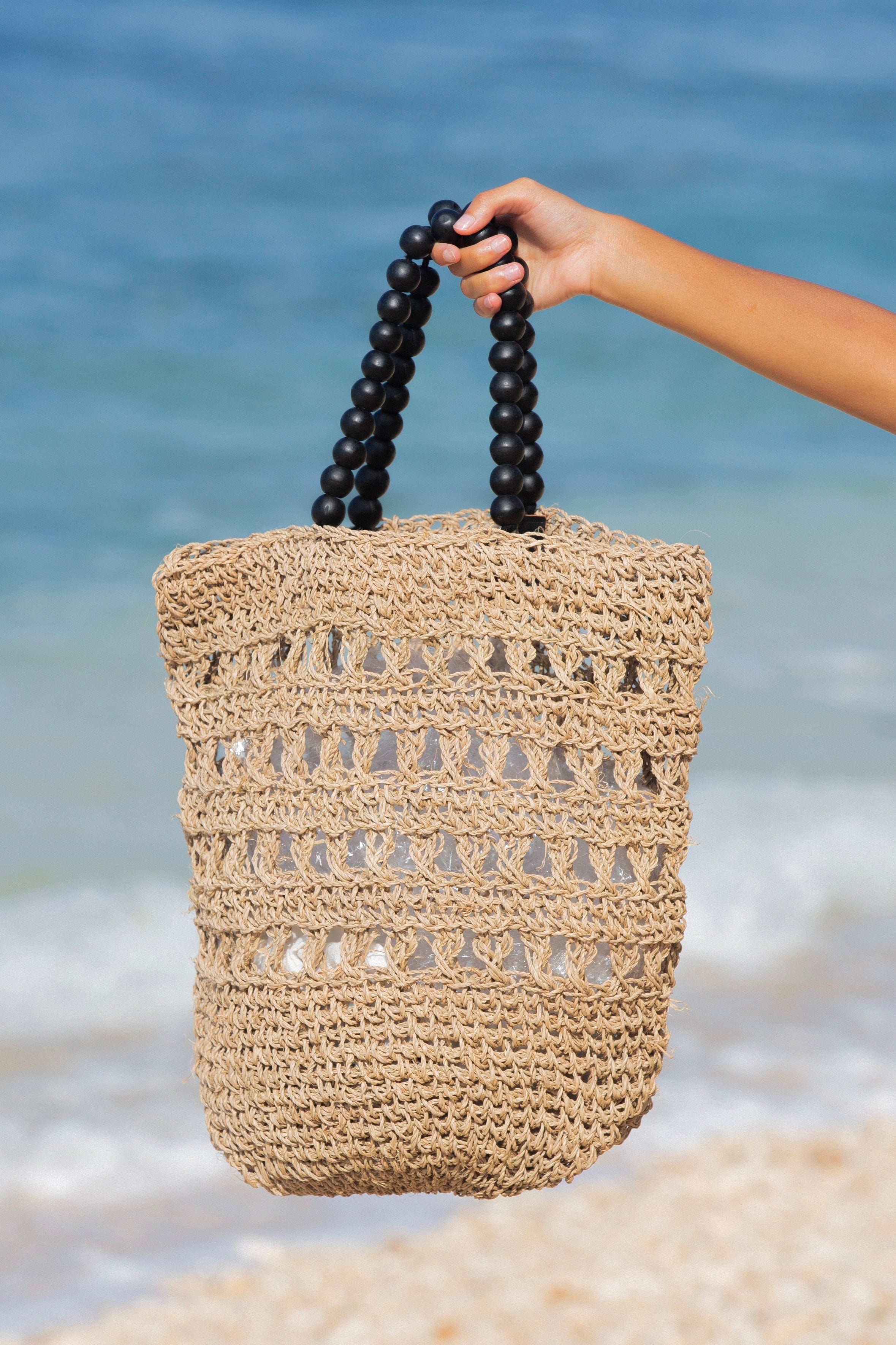 From beach to city life: use this stylish rafia bag to bring your essentials anywhere. Made with 100% natural materials.